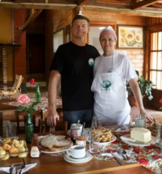 19h00 – Activité culturelle avec les paysans de Acolhida na Colônia chez Pousada Chalé Assing. L’hébergement : La famille Assing illustre bien la vie agricole familiale. Elle partage ses activités entre servir ses hôtes et travailler sur le terrain. Les visiteurs peuvent participer à diverses activités authentiques : traire les vaches, récolter des œufs, prendre soin des animaux, ou encore pêcher. Une spécialité de la maison à ne pas manquer: le pain de maïs cuit dans des feuilles de “caeté”, une espèce de la famille des bananiers